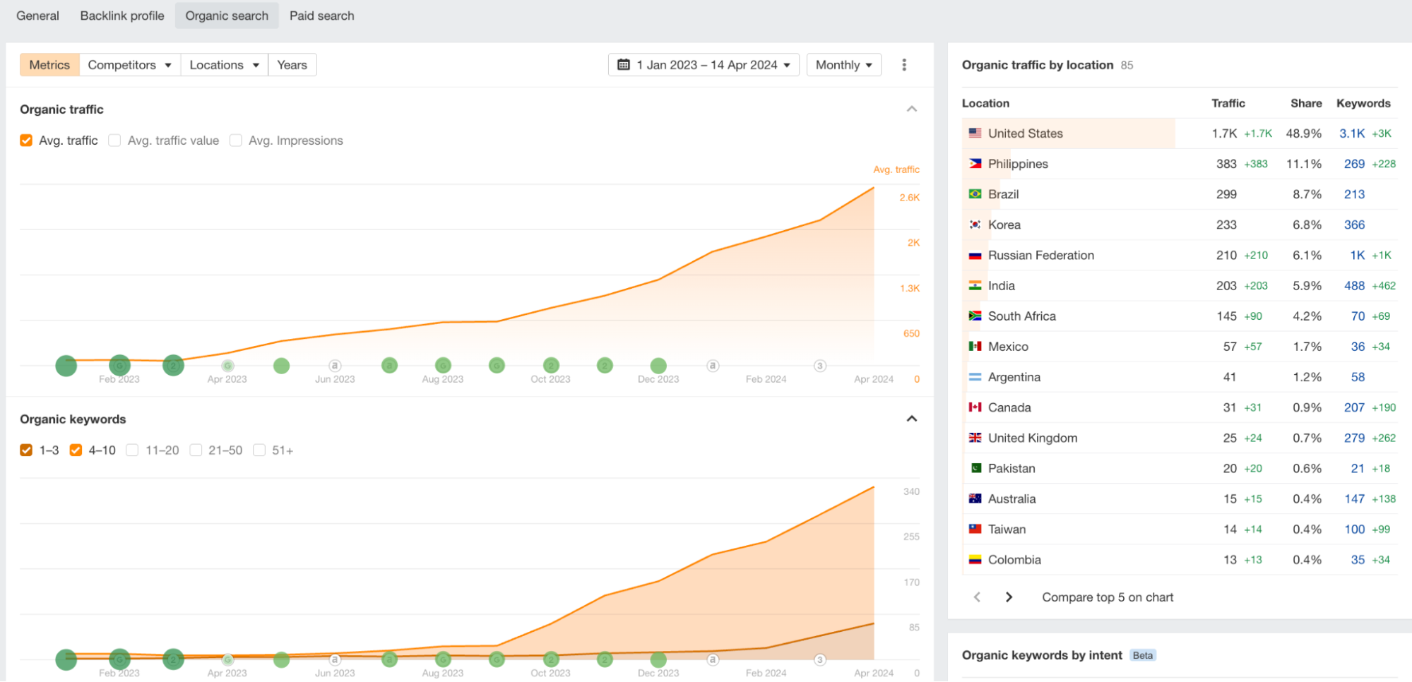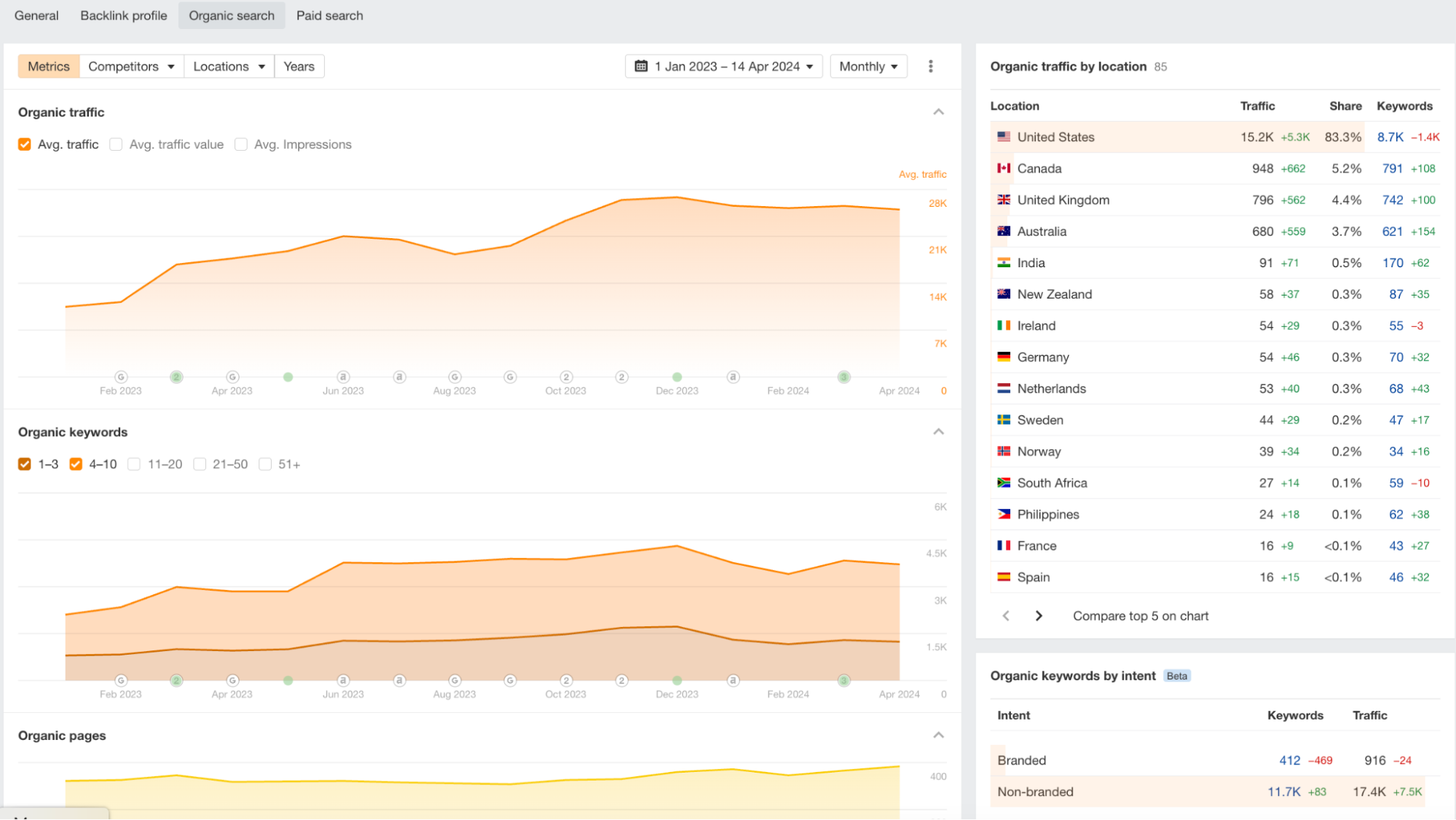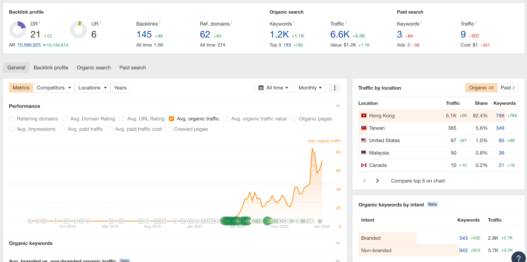 - Overall organic traffic jumped to 6.6K (+6.5K increase)