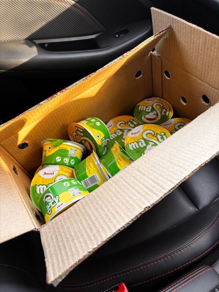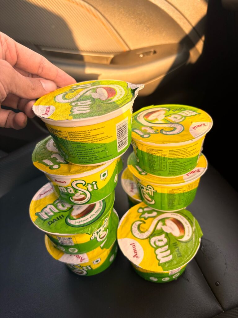 Carrying big boxes of Amul Masti fresh curd, we covered different neighborhoods: