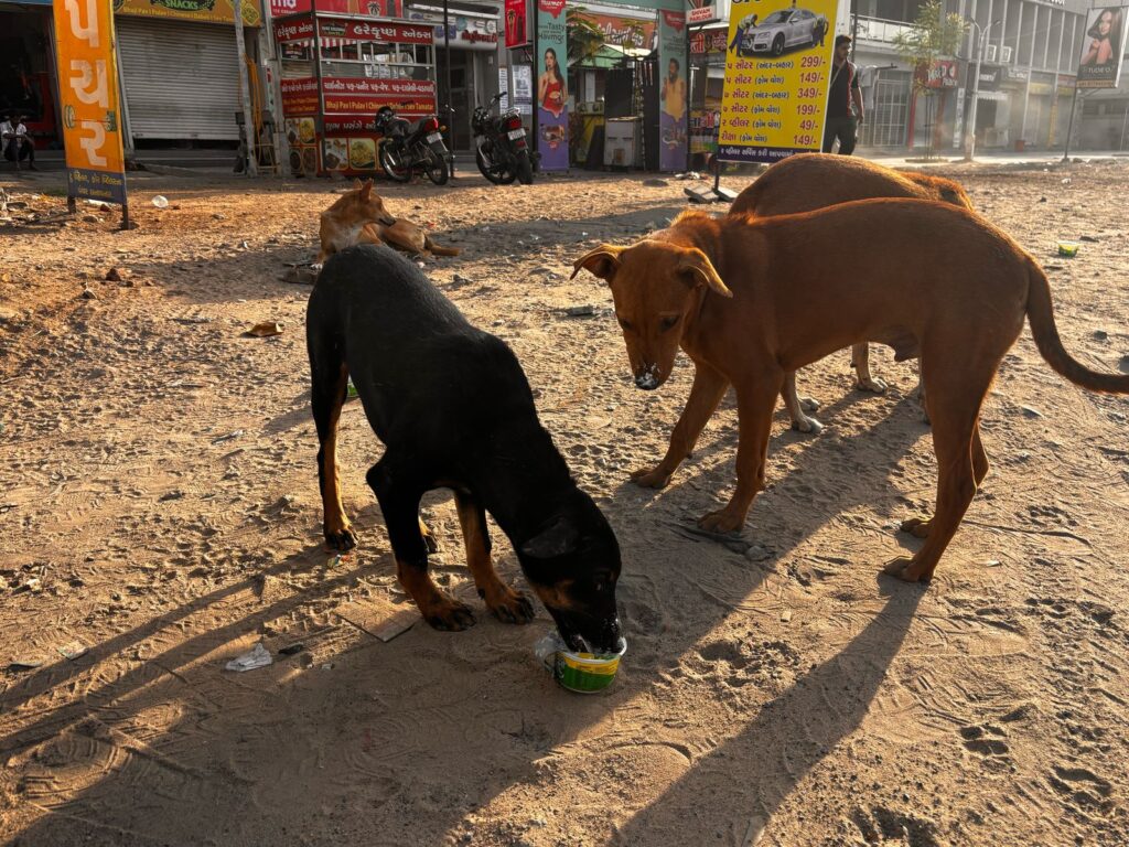 For our feeding drives, we served fresh curd – cooling, hydrating, and packed with nutrients – to help dogs cope with the intense temperatures.